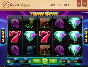 Queen Vegas Casino is the best place to play Twin Spin slots. Sign up today and you can get 25 free spins and get a feel for the casino games without using your own money. Plus, you can enjoy Twin Spin slots mobile on your smartphone or tablet. As long as you have an Internet connection, a winning spin is never far behind.